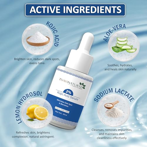 7 DAYS Face Serum for Clear & Bright Skin | Removes Dark Spots | Blemishes & Pigmentation | Face Serum for All Skin Types | 2% Kojic Acid(30 Ml)