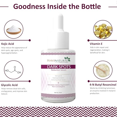 • Dark spot Serums with kojic acid for face: Dark Spot Serums with Kojic Acid for face. Our specialised Face Serum for pigmentation and blemishes is crafted to cure and reveal a clearer radiant complexion.