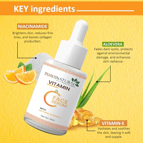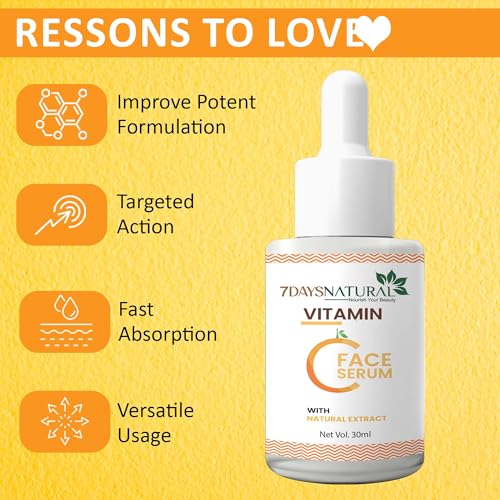 7 DAYS Vitamin C Face Serum | Increases Skin's Glow Instantly & Reduces Spots Overtime With 2% Niacinamide