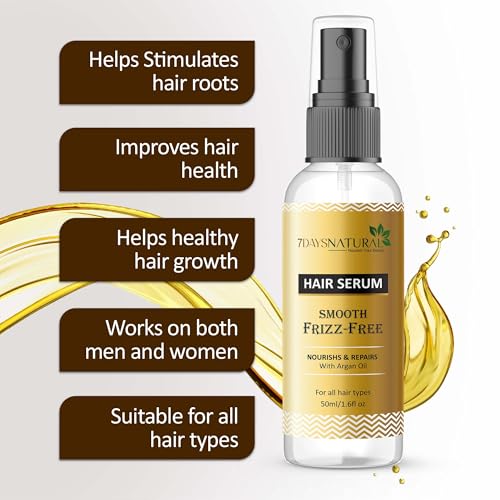 7DAYS Natural Hair Serum For Dry & Frizzy Hair | Frizz Reduction | Breakage Reduction | Luxurious Shine | Prevents Split Ends | Powered By JD Jojoba Hair Complex | Hair Serum For Women & Men | 50ml