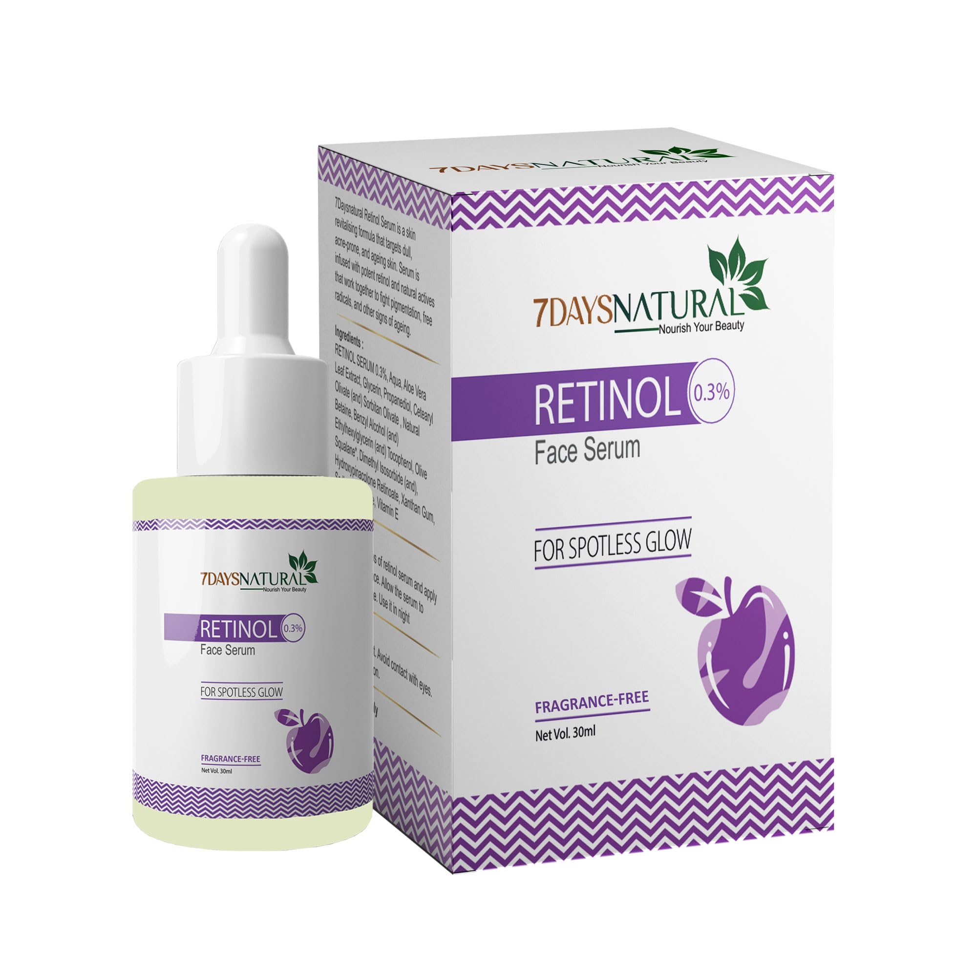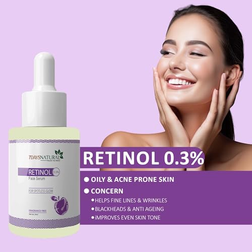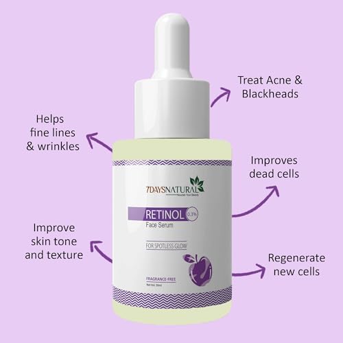 7 DAYS Natural 0.3% Retinol Face Serum | Night Serum with Niacinamide & Hyaluronic Acid for Glowing Skin | For Men & Women (30ml)