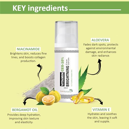 • Brightening and Even Tone: Vitamin C help to brighten the skin and even out skin tone by inhibiting melanin production. Vitamin C reduce the appearance of dark spots hyperpigmentation and acne scars resulting in a more radiant complexion.