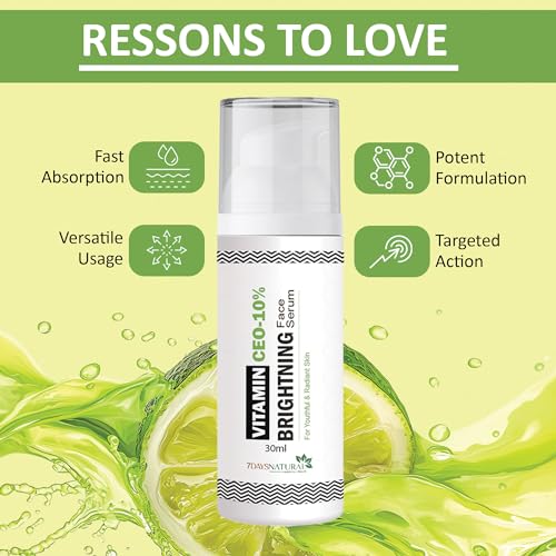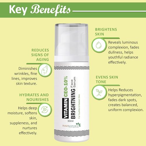 7 DAYS NATURAL Vitamin C Face Serum For Glowing Skin & Pigmentation with Hyaluronic Acid & Niacinamide | Highly Stable | Non Irritating & Non Sticky(30 Ml)