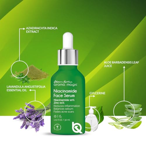 Blossom Kochhar Aroma Magic Niacinamide Face Serum is a wonderful addition to your skincare routine. This serum is enriched with natural extracts and essential oils that help to nourish and rejuvenate your skin. With niacinamide 10% and zinc 1% this serum works wonders in reducing inflammation and balancing sebum production. It also fades acne scars and gives brighter skin. The lightweight formula of this serum is easily absorbed by the skin making it perfect for daily use. Whatever skin type you have this