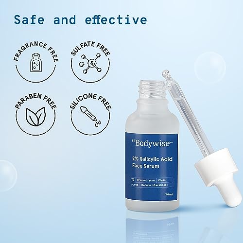 Be Bodywise 2% Salicylic Acid Face Serum | With Neem, Rice Water & Niacinamide | Reduces Excessive Oil, Acne, Blackheads | Improves Skin Texture & Deep Cleanses Open pores | 30ml