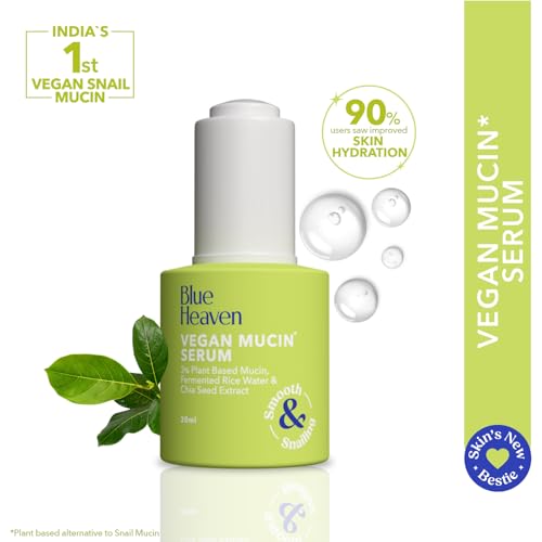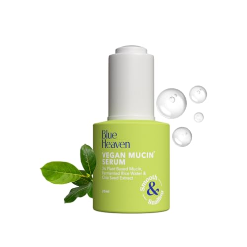 Introducing our Vegan Mucin Serum a revolutionary face serum that combines the power of plant-based mucin with premium skincare ingredients for glowing and youthful skin. This hydrating serum features plant mucin instead of snail mucin a key ingredient in Korean skincare renowned for its ability to lock in your skin's natural moisture leaving it plump and radiant. Infused with fermented rice water this face serum works to diminish dark spots and pigmentation promoting a more even and luminous complexion. Chia seed extract enhances its anti-aging properties helping to prevent premature aging and maintain a youthful appearance. Ideal for both men and women this skin serum is a must-have in your skincare routine. Embrace the best face serum for glowing skin with our vegan mucin moisturizer and experience the transformative power of Korean face serums. Blue Heaven Vegan Mucin Serum is your go-to solution for a lifted lit-from-within glow.