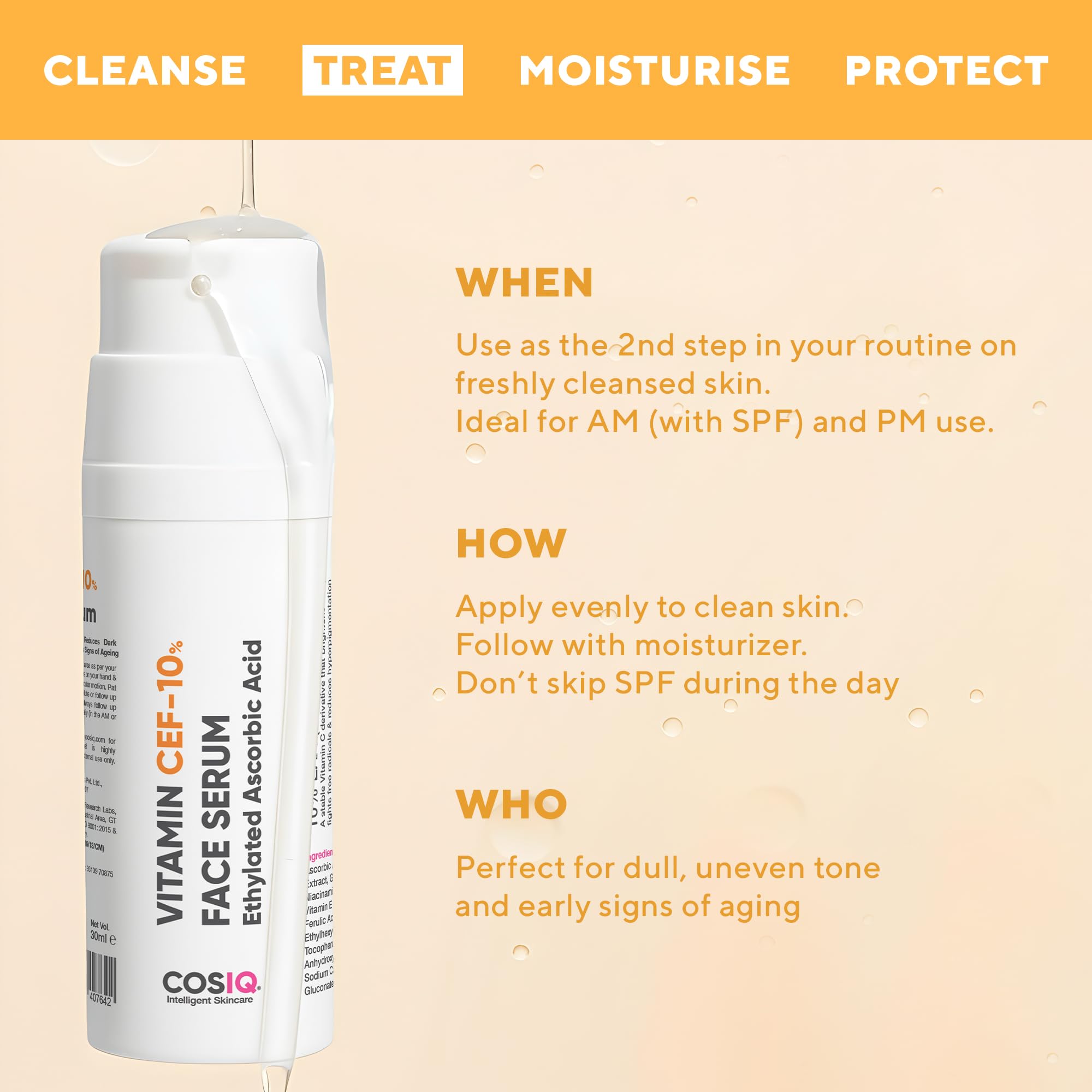 Cos-IQ 10% Vitamin C Serum 30ml | With Vitamin E & Ferulic Acid | Glowing & Brightening Skin | Anti-Aging Serum for Wrinkles Fine Lines & Dark Spots | All Skin Types | 30-Days Pack