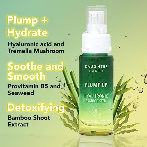Daughter Earth Hyaluronic Acid Serum For Face | Plump Up Enriched With Multi-Molecular Hyaluronic Acid, Tremella Mushroom, Bamboo Shoots, Seaweed & Provitamin B5 | Get Hydrated & Youthful Skin - 30ml