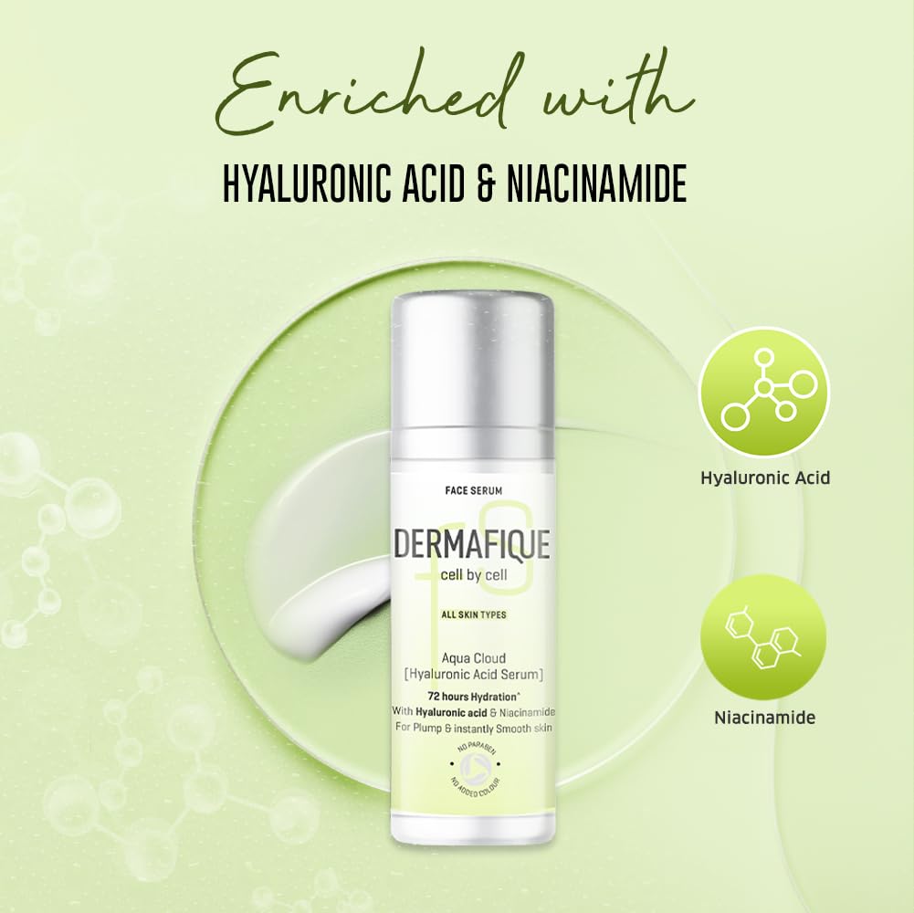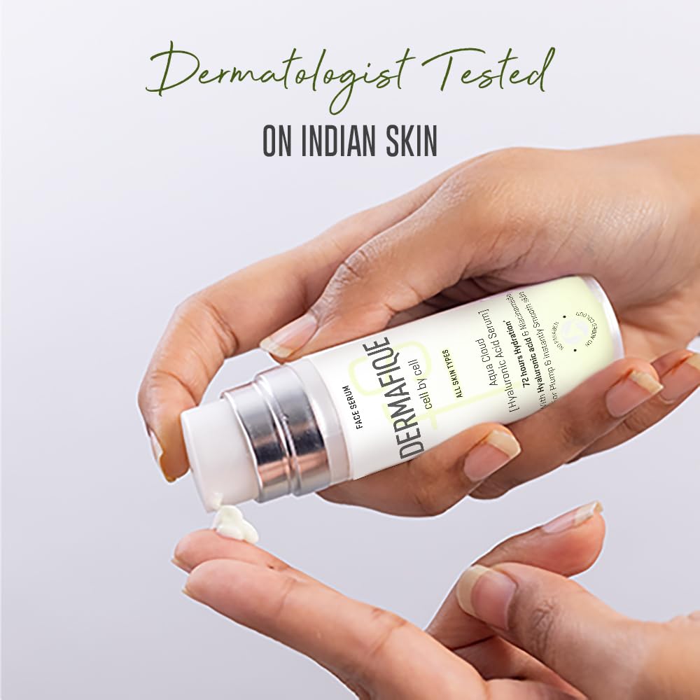 Looking for a serum that provides more than 24 hours of hydration? Look no further than the Dermafique Aqua Cloud [Hyaluronic Acid Serum] This clinically proven serum is expertly formulated to provide 72 hours hydration*. It is enriched with Hyaluronic Acid and Niacinamide which leaves the skin firmer and provides plump instantly smooth skin. This serum has no paraben or added colour and is suitable on all skin types. Need an expert solution for hydrated skin? Trust the Dermafique Aqua Cloud [Hyaluronic Acid Serum] your go-to solution for instantly smooth skin. For effective results use it twice daily to get hydrated and moisturized skin. *Basis Instrumental study