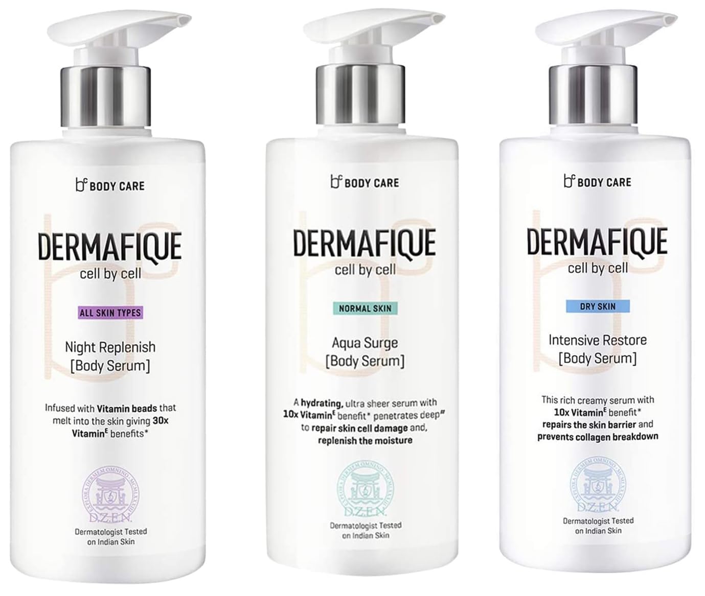 Dermafique Intensive Restore Body Serum&Dermafique Aquasurge Body Serum&Dermafique Night Replenish Body Serum
