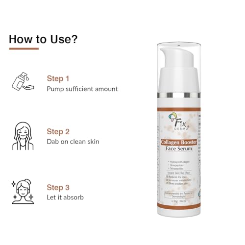Fixderma Hydrolyzed Collagen Booster Face Serum | Collagen Serum for Face Face, Fine Lines & Wrinkles | Serum for Men & Women | Suitable for All Skin Types - 30g
