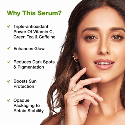 Your search for a face serum that lends your skin a spotless glow ends with this unique trial pack! This refreshing & hydrating Green Tea & 15% Vitamin C Face Serum comes brimmed with antioxidants-rich ingredients - 15% Vitamin C Green Tea Extracts & 1% Caffeine. The constituents of this serum for face help revive dull skin reduce the appearance of dark spots & pigmentation and boost sun protection. The presence of 15% Vitamin C works its magic in fading dark spots hyperpigmentation & oxidative damage in the skin while also protecting against sun damage. Antioxidant-rich Caffeine and extracts of refreshing Green Tea work closely to hydrate the skin instantly for plump & bouncy skin. The power duo also helps soothe redness & inflammation offers a toned look and improves sun protection. This lightweight & water-based serum gets absorbed into the skin quickly to revive dull skin. 95% of users saw hydrated skin for up to 24 hours as well as improved skin glow. The users also found that the serum provides a 63% reduction in dark spots & pigmentation. This serum comes in specially coated packaging to retain the efficacy and stability of Vitamin C. 95% of users agreed the product improved skin glow 63% reduction in dark dark spots & pigmentation 95% of users agreed to have experienced 24 hours of hydration/moisturization Formulated to suit both women & men Green Tea & 15% Vitamin C Face Serum is PETA Certified 100% Vegan and free from Paraben SLS and all other toxic ingredients. It is FDA-approved dermatologically tested and has Zero Plastic Footprint.
