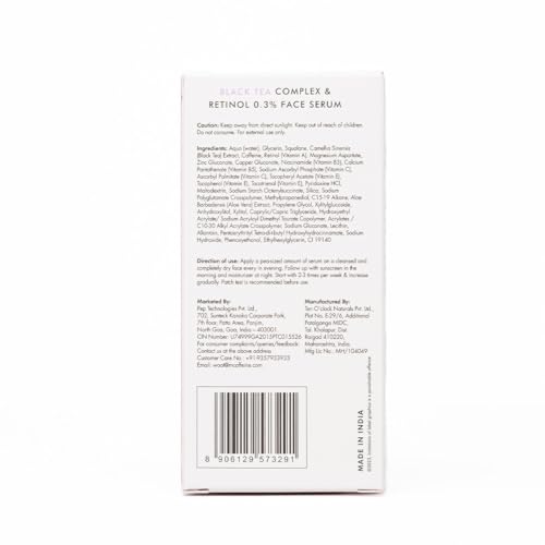 HomeBeautyFace CareMoisturizersSerum & EssencemCaffeine Retinol 0.3% & Black Tea Complex™ Anti Ageing Face Serum | Reduces Wrinkles, Fine Lines & Fights Signs of Ageing | Boosts Collagen by 80% | Retinol & Squalane Serum for Women & Men - 20 ml
