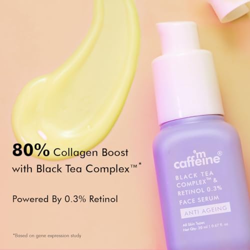 mCaffeine Retinol 0.3% & Black Tea Complex⢠Anti Ageing Face Serum | Reduces Wrinkles Fine Lines & Fights Signs of Ageing | Boosts Collagen by 80% | Retinol & Squalane Serum for Women & Men - 20 ml