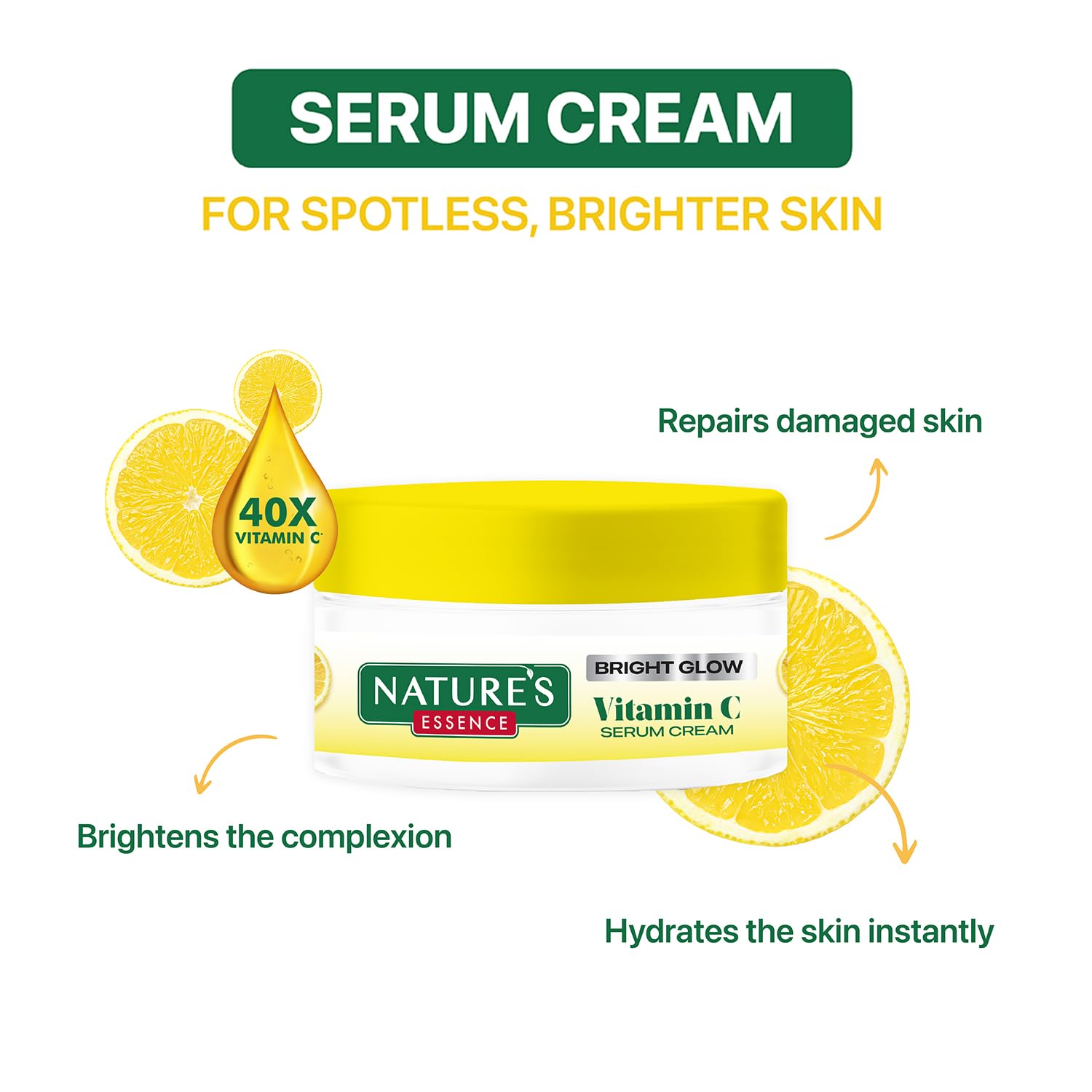 Give your skin the care it deserves with Nature's Essence Vitamin C Face Cream a nourishing and rejuvenating skincare essential designed to repair damage brighten your complexion and provide deep hydration. Infused with the powerful combination of Yuzu Lemon and Niacinamide this cream helps you achieve radiant healthy and youthful-looking skin. Packed with Vitamin C from Yuzu Lemon this face cream works to repair skin damage caused by pollution sun exposure and environmental stress helping to restore your skin natural glow. It actively reduces dullness dark spots and uneven skin tone leaving you with a brighter and more refreshed complexion. The presence of Niacinamide further enhances skin health by refining texture minimizing pores and soothing redness ensuring a smooth even-toned appearance. Additionally this cream instantly hydrates the skin locking in moisture for long-lasting softness and suppleness. Designed for all skin types including oily dry and sensitive skin this cream provides intense nourishment without clogging pores.