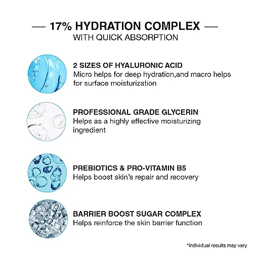 Neutrogena Hydro Boost Hyaluronic Acid Serum is a unique formula with bursting hyaluronic pearls delivering our most concentrated hydrating serum yet. Infused with glycerin that delivers moisture 9 cell layers deep into the outer layer of the skin to reveal smooth and supple skin. This lightweight hyaluronic acid serum contains 17% hydration complex that quickly absorbs into your skin. Infused with micro + macro hyaluronic acid to hydrate deeper into the skin surface while pro-vitamin B5 and prebiotic technology help boost skin renewal and recovery for healthy looking skin.