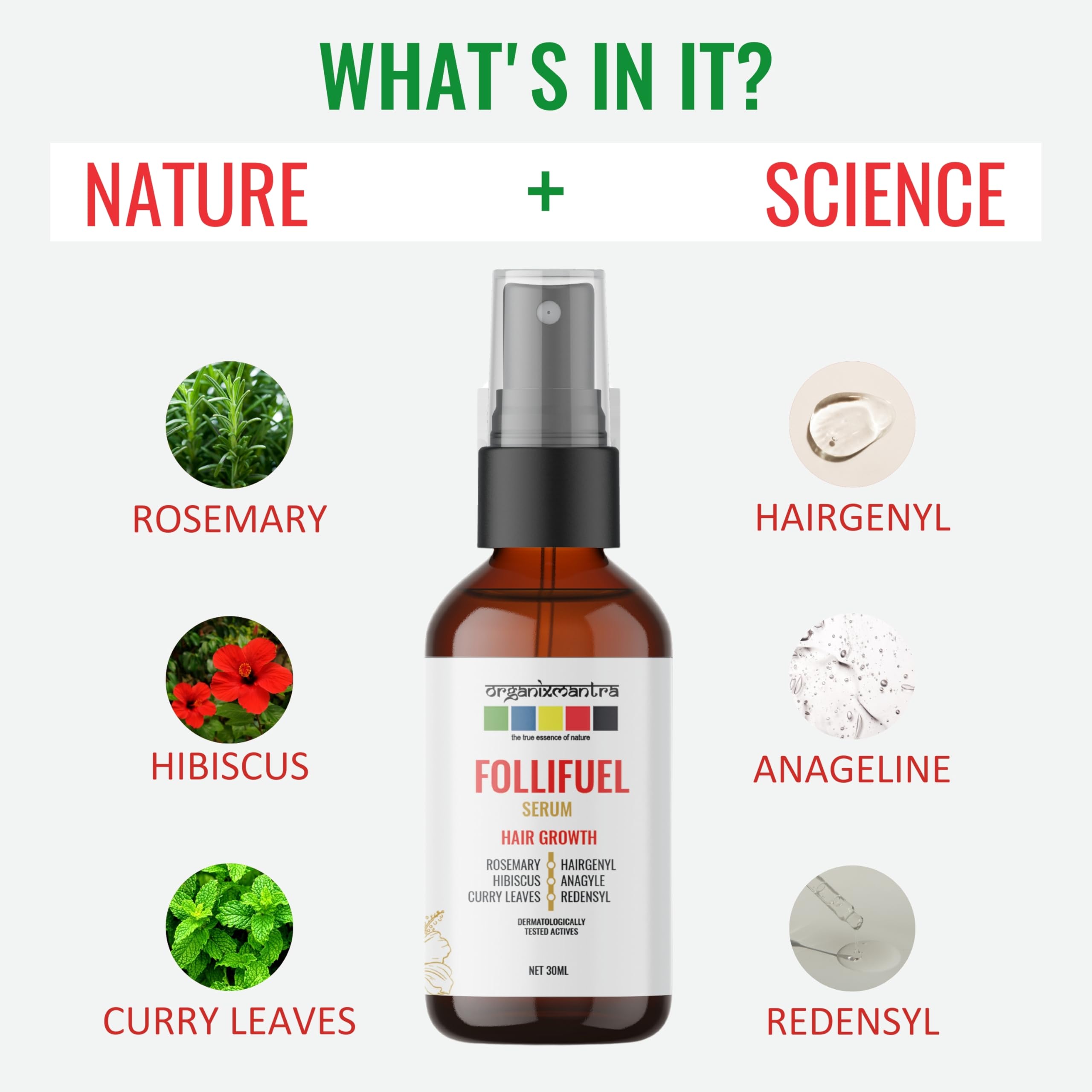 Organix Mantra FolliFuel Hair Growth Serum with Anageline Hairgenyl Redensyl Rosemary Hibiscus & Curry Leaves | Promotes Hair Growth Strengthens Roots Nourishes Scalp - 30ML