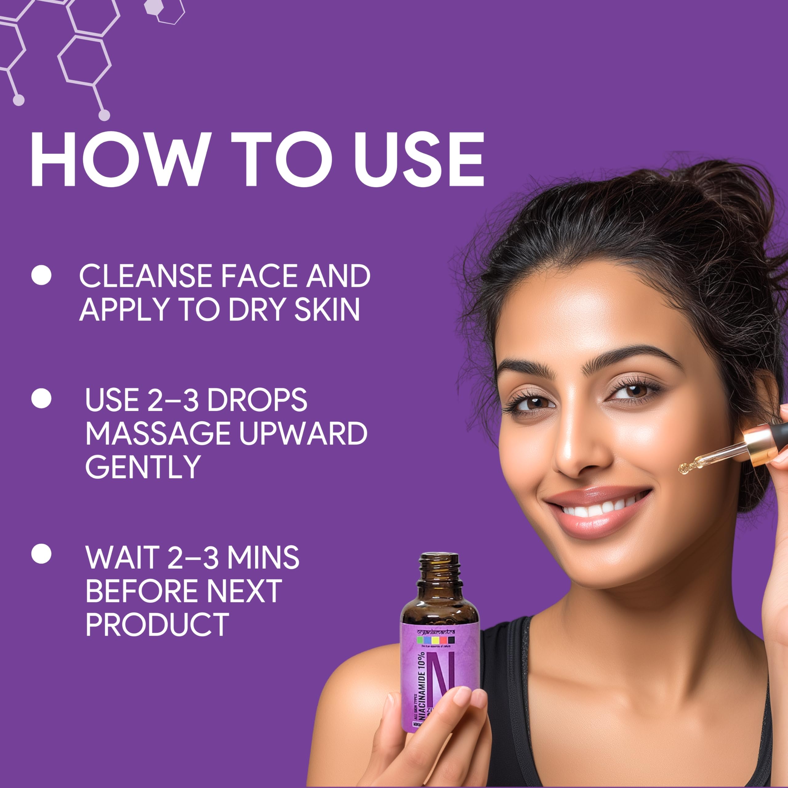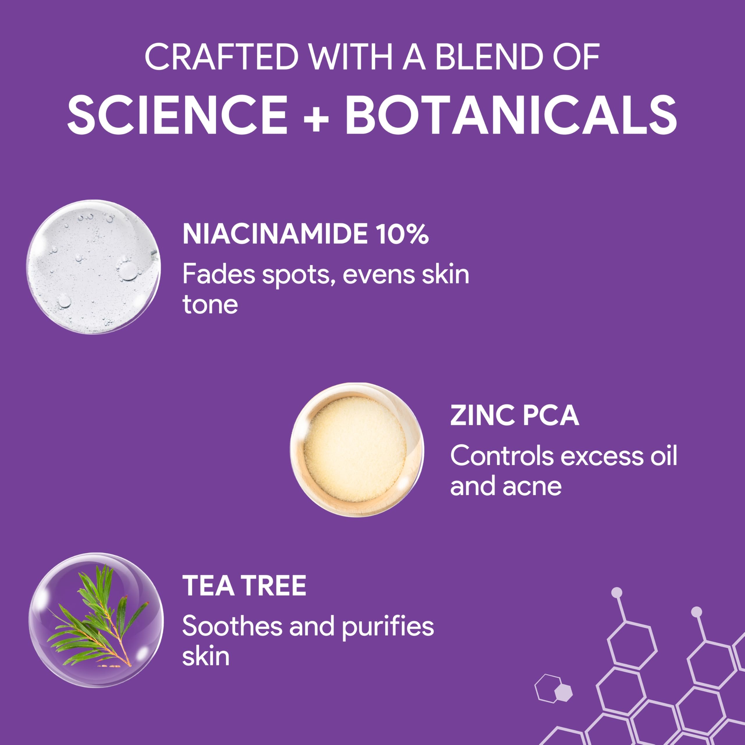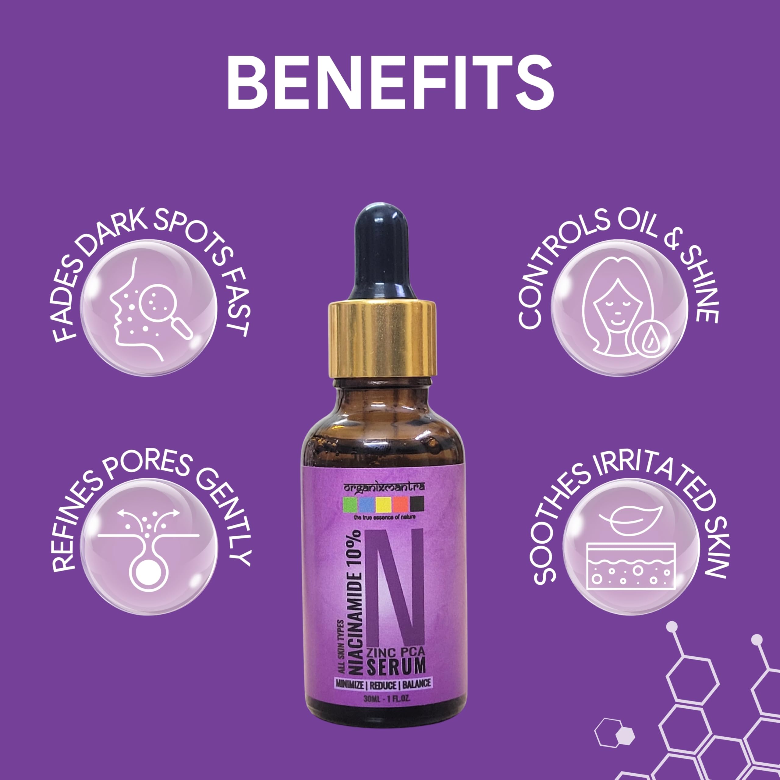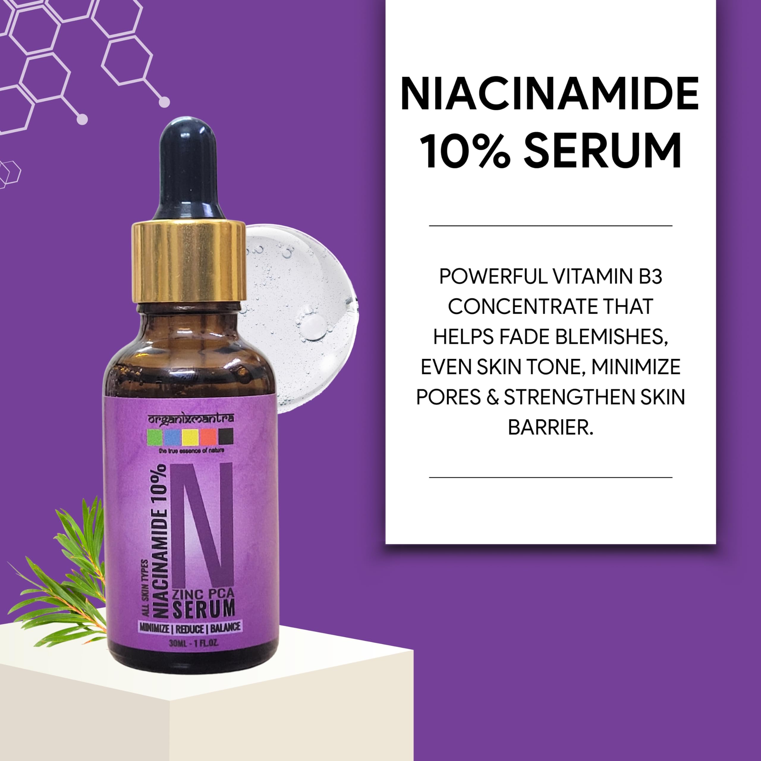 Introducing our highly effective 10% Niacinamide Face Serum with Zinc PCA 1% & Tea Tree Oil specially formulated known to brighten clear and balance your skin. Our unique formula contains a powerful combination of ingredients that work together to deliver optimal results. Niacinamide also known as Vitamin B3 is a well-known brightening agent that may help to even out skin tone and reduce the appearance of dark spots. It also may help to reduce the appearance of fine lines and wrinkles making your skin look youthful and radiant. Zinc PCA is a mineral that is known to work in minimizing the appearance of pores and restore the skin's natural moisture levels. It may help to control the production of sebum which reduces the appearance of acne and breakouts. Tea Tree Oil a natural anti-inflammatory is known to help balance and soothe the skin. It has antimicrobial properties that may help to keep your skin clear and healthy. Our lightweight non-greasy formula absorbs quickly into the skin leaving it feeling refreshed and hydrated. It is free of parabens sulfates and fragrances making it suitable for all skin types even sensitive skin. It can be used morning and night regime after cleansing for best results. With regular use of 10% Niacinamide Face Serum you may see a noticeable improvement in your skin's texture and tone. It may help to brighten and even out your skin reduce the appearance of dark spots minimize the appearance of pores and restore your skin's natural moisture levels. It may help to protect your skin from environmental stressors and damage. Experience the benefits of a brighter clearer and more balanced complexion with 10% Niacinamide Face Serum. Give your skin the love and care it deserves with our powerful and effective formula