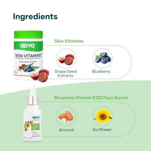 OZiva Daily Skin Care Combo Pack - Skin Vitamins + Bioactive Vitamin E122 Face Serum With Hyaluronic Acid for Hydration & Radiant Skin