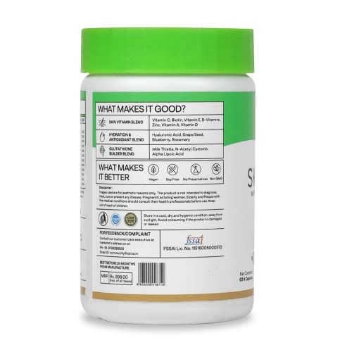 • Improves skin health with antioxidants and anti-inflammatory compounds of Blueberry Grape Seed Extract and Rosemary Extracts