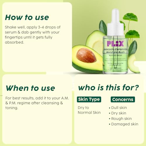 PLIX- THE PLANT FIX Barrier Repair Regime Combo with Avocado Ceramide Moisture Rush Serum & Avocado Cleanser | Nourishes and Hydrates Skin | For Men & Women| Pack of 2 (30ml + 100ml)