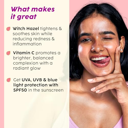 Plix Guava & Roses Glow Fat Water Toner Serum is a dynamic 2-in-1 skincare solution that harnesses the power of natural ingredients for a radiant complexion. Niacinamide a variant of Vitamin B3 takes center stage promoting skin brightness and moisture retention. Combined with water-soluble Vitamin C known for its potent antioxidant properties this serum becomes a powerhouse for skin health. Witch Hazel a natural astringent derived from the bark and leaves of the Witch Hazel shrub adds a refreshing touch to the formula. Meanwhile the infusion of Guava Extract and Rose Water a vitamin-rich blend contributes to skin brightening and a healthy glow. The benefits of this toner serum are both comprehensive and effective. It diligently balances the skin's pH thanks to the inclusion of ZigaBio B2F and Witch Hazel ensuring optimal moisture levels and preserving the skin's natural equilibrium. With a high concentration of Vitamin C the serum actively inhibits melanin production leading to a brighter and more even skin tone. Niacinamide the hydration hero works to improve skin moisture resulting in a plump and velvety-smooth complexion. Furthermore the unique blend of rose and guava extracts lends a calming touch to the serum effectively reducing redness and inflammation promoting a naturally soothed and toned skin. In essence the Guava & Roses Glow Fat Water Toner Serum emerges as a thoughtful and results-driven addition to your skincare routine.