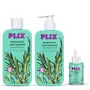 Revitalize your hair care routine with the Plix Rosemary Hair Care Trio meticulously crafted to nourish and strengthen your locks from root to tip. Our Advanced Anti-Hairfall Shampoo is infused with a potent 3% Rosemary Extract to improve scalp blood circulation reduce hair fall and stimulate growth. Complemented by an Amino Acid Complex and Plant Keratin it tames frizz smoothens cuticles and enhances shine while the sulfate-free formula gently cleanses without stripping natural oils. Paired with our powerhouse Advanced Anti-Hairfall Conditioner enriched with 3% Shea Butter for intense moisturization and breakage prevention along with an Amino Acid Complex and Plant Keratin for nourishment and softness. Finally experience the transformative effects of our Rosemary Hair Growth Advanced Serum infused with Redensyl Baicapil and AnaGain to promote thicker healthier hair growth while revitalizing hair follicles and reducing hair fall. Elevate your hair care ritual with the Plix Rosemary Hair Care Trio and embrace stronger more voluminous hair with every wash.