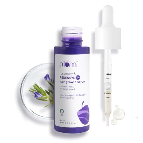 Growth needs the right chemistry. Unlock the secret to long luscious locks with this power-packed serum. Plum Rosemary & 3% Redensyl Hair Growth Serum combines potent botanicals with clinically proven actives to reduce hair fall and kickstart your hair growth journey. Featuring 3% Redensyl 4% Anagain and 4% Baicapil it stimulates hair growth while Rosemary and Ginseng boost circulation and strengthen hair follicles. Lightweight and water-based this serum is not sticky or greasy on the scalp and comes with an easy-to-use precision-tip graduated (marked) dropper.