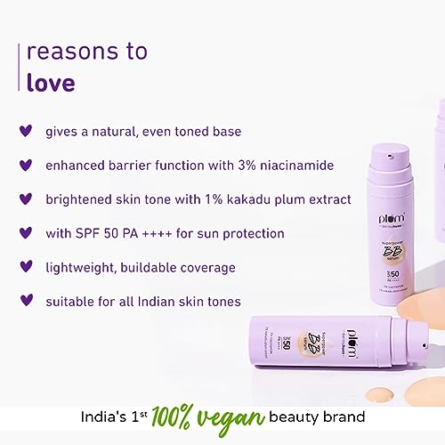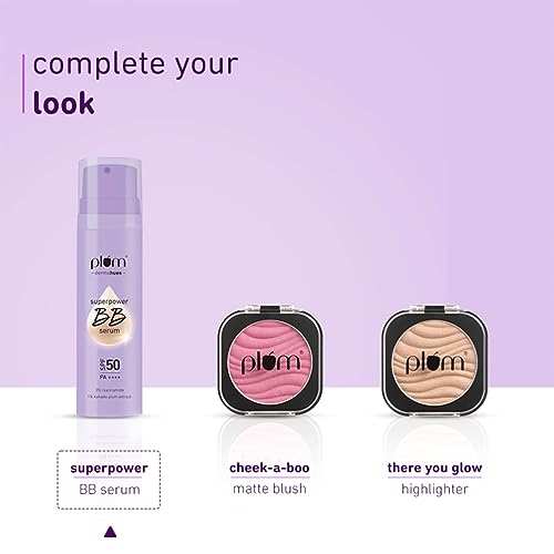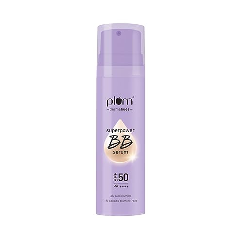 Plum Superpower BB Serum with SPF 50 PA ++++ | Natural Everyday Base | Evens Out Skin Tone | Buildable Coverage | With 3% Niacinamide | 100% Vegan & Cruelty Free | 30 ml - 04 Almond