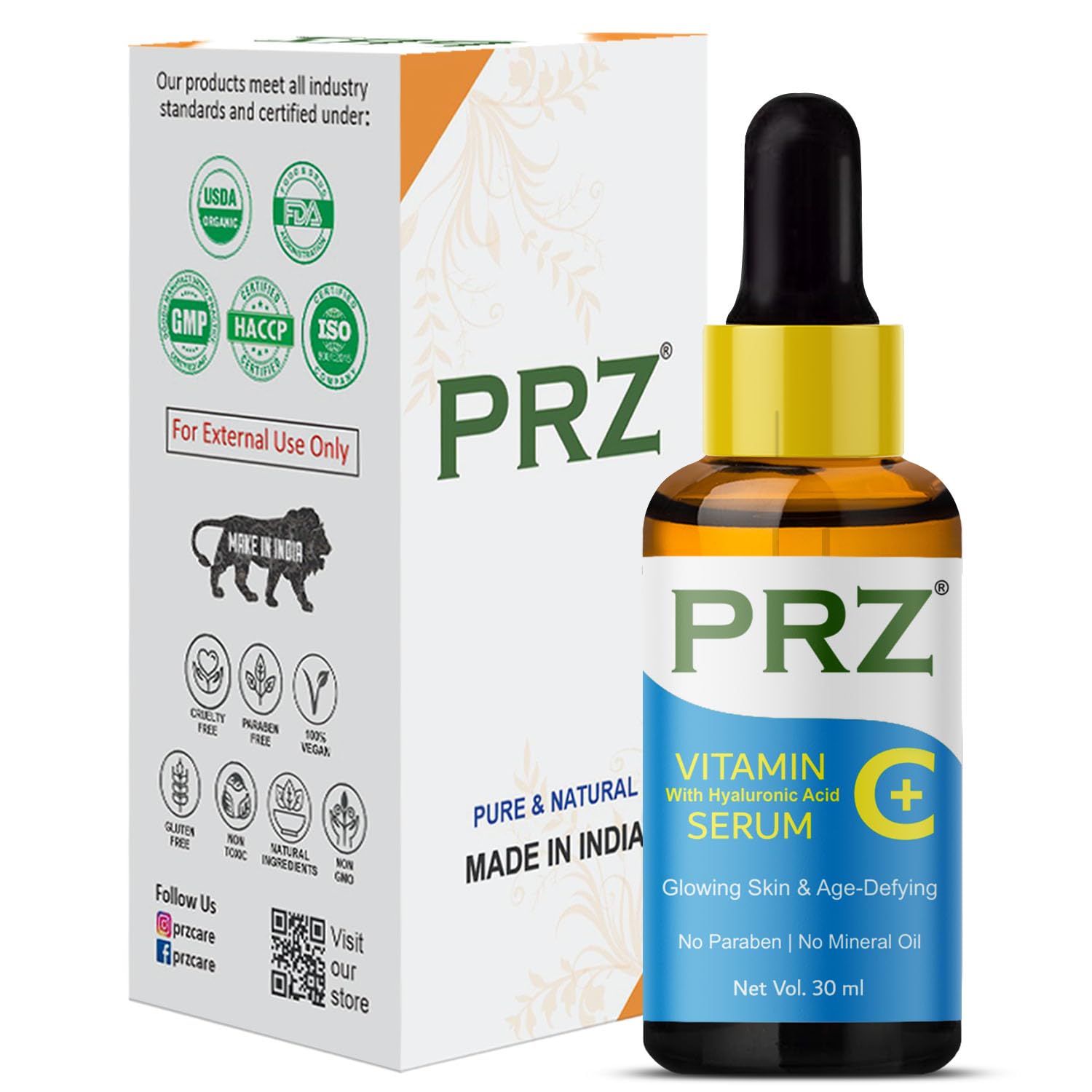 HomeBeautyFace CareMoisturizersSerum & EssencePRZ Vitamin C Serum (30ML) With Hyaluronic Acid Glowing Skin & Age-Defying Fairness Brightening Vitamin C Super Strength (No Paraben | No Mineral Oil)