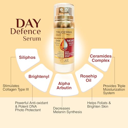 Regaliz Truderma Duo Anti-Ageing Serums: 2-in-1 Day Defence & Night Intense Serums for Wrinkles & Fine Lines 50ml