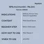 The power of niacinamide and zinc this potent serum is perfect for combatting blemishes enlarged pores and uneven skin tone. A must-have for battling breakouts The Niacinamide 10% + Zinc 1% serum regulates sebum production to minimize pores and reduces blemish-causing bacteria keeping your complexion clear calm and collected. A superlative skin improver niacinamide boosts the skin's immunity and improves moisture retention while a brilliant shot of zinc PCA works to repair damaged skin and promote the creation of collagen. Reduces Blemishes Reduce appearance of dark spots Maintain oil balance in the skin Diminishes open pores Repair Skin Barrier Specification: Form: Serum Ideal for: Men & Women Skin Type: All Skin Types Application Area: Face Goodness: Paraben free Cruelty free Vegan & Dermatologist tested. INGREDIENTS:- 10% Niacinamide 1% Zinc 1% Aloe vera Extract Liquid How To Use:- "Step 1: Use in AM or PM¦Apply after cleansing. Toning & hydrating with Hyaluronic Acid (if using). Apply 2-3 drops. Step 2: Let serum absorb fully into skin before moving on to the next step of your routine."