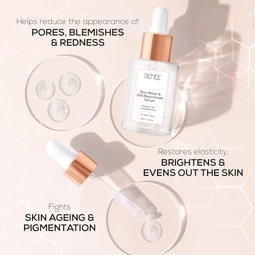RENEE Rice Water & 10% Niacinamide Face Serum for Clear, Bright Skin, Fades Blemishes & Appearance of Pores, Evens Out Skin, Lightweight, Smoothen Fine Lines & Wrinkles - for All Skin Types - 30 Ml