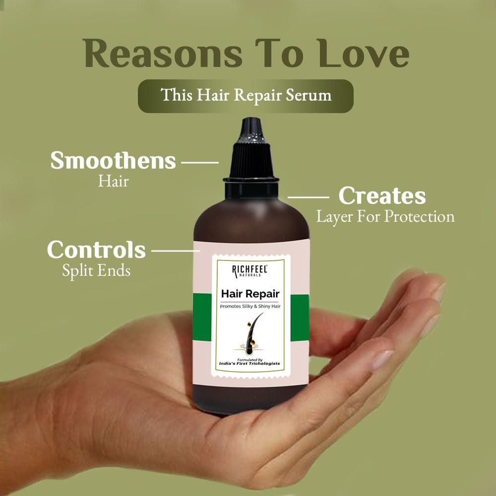Richfeel Hair Repair Serum for Women & Men|All Hair Types for Frizz-free Smooth & Glossy Hair |With Argan Oil & Vitamin E | 60 ml