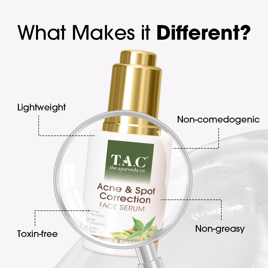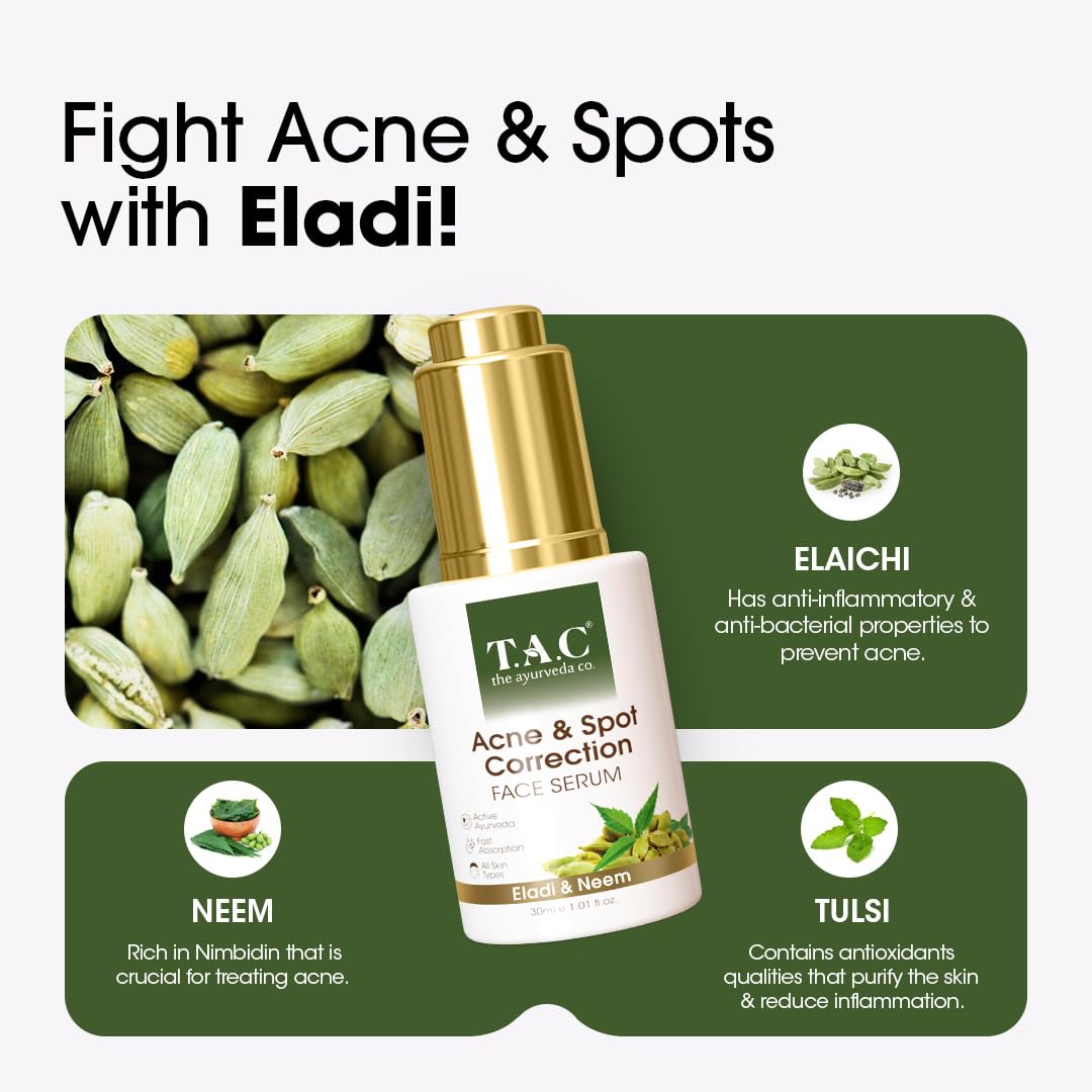 TAC Acne & Spot Correction Face Serum With Eladi & Neem | Treats Acne Fades Spots Balances Sebum | Non-comedogenic | For Oily & Acne-Prone Skin | 30ml