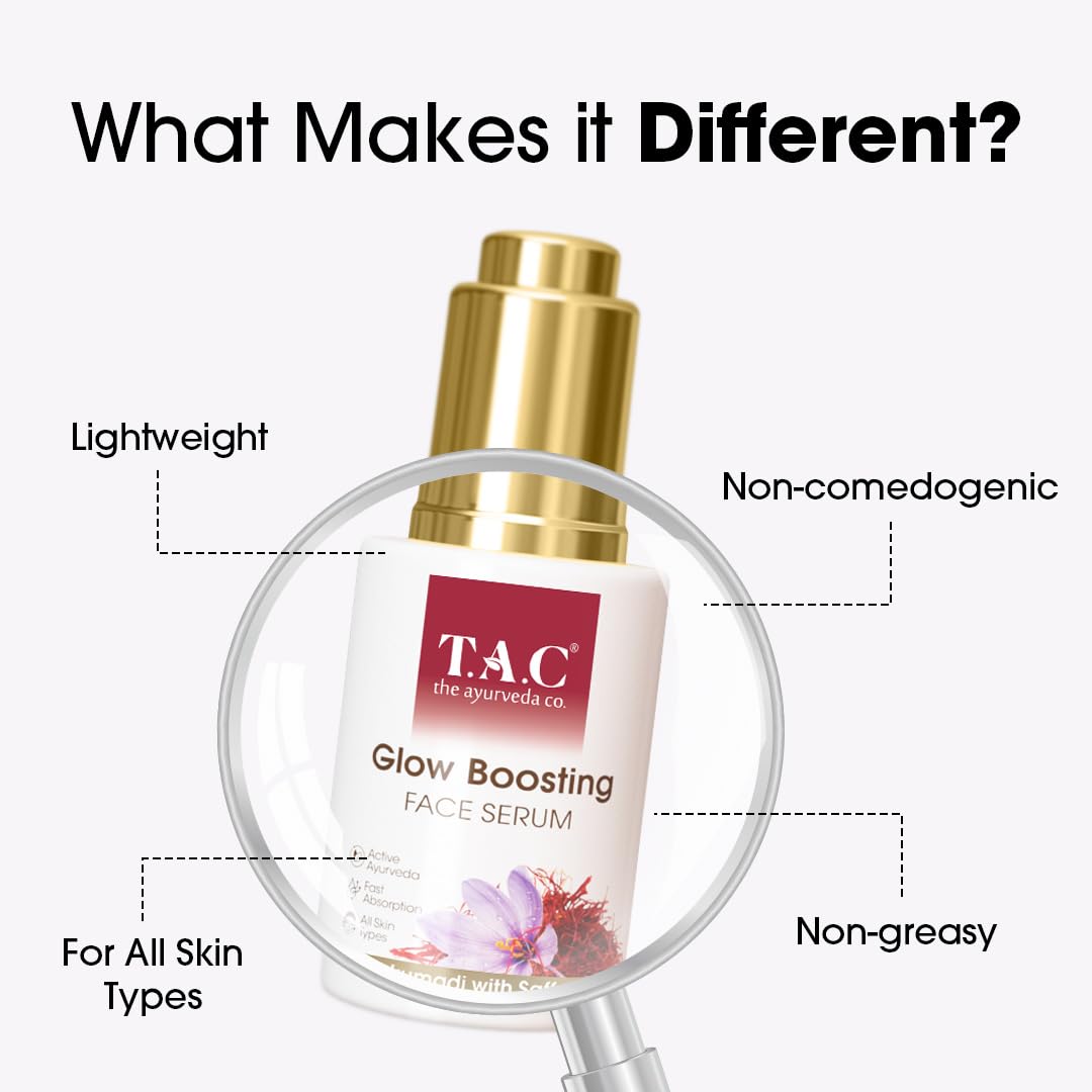 TAC - The Ayurveda Co. Kumkumadi Glow Boosting Face Serum With Saffron & 24K Gold | Brightening & Pigmentation Control | Spot Reduction | For Dull Skin & All Skin Types | 30ml