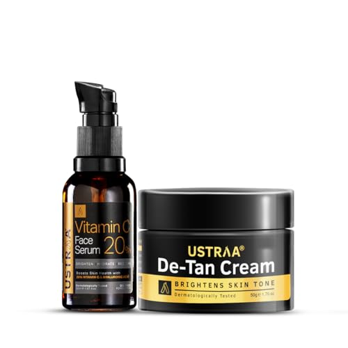 Vitamin C Face Serum - 30 ml For beating the effects of stress and pollution on your skin this is the ultimate solution. With 20% Vitamin C in its purest form this serum helps fight signs of aging brightens and hydrates the skin. With an oil-free formulation it provides nourishment without stickiness. De Tan Cream - 50 g Men tend to spend a lot more time outdoors. In situations like driving or commuting face tends to get exposed to the sun. This leads to tanning or uneven partial tanning and skin dryness. Our De-Tan cream reduces tan brightens and evens skin tone. Highly recommended for outdoor men and people with darkened skin tone. Our cream is free of any harmful chemicals and safe to use daily to achieve a brighter fairer and even skin tone.