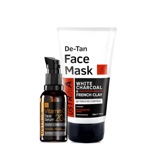 Ustraa 20% Vitamin C Face Serum with Hyaluronic Acid - For beating the effects of stress and pollution on your skin this is the ultimate solution. With 20% Vitamin C in its purest form this serum helps fight signs of aging brightens and hydrates the skin. With an oil-free formulation it provides nourishment without stickiness. Ustraa Face Mask - Oily Skin - This is a Face Mask designed to remove tanning and even out the skin tone. Skin that gets affected by prolonged sun exposure pollution and other irritants tends to gather impurities from the atmosphere which in the long run affects the skin and enhances aging. This Mask helps to remove those impurities from the face and keep the face looking fairer younger and healthier. It also helps in excess oil removal. It is not a peel-off mask so it can be washed away with water only.