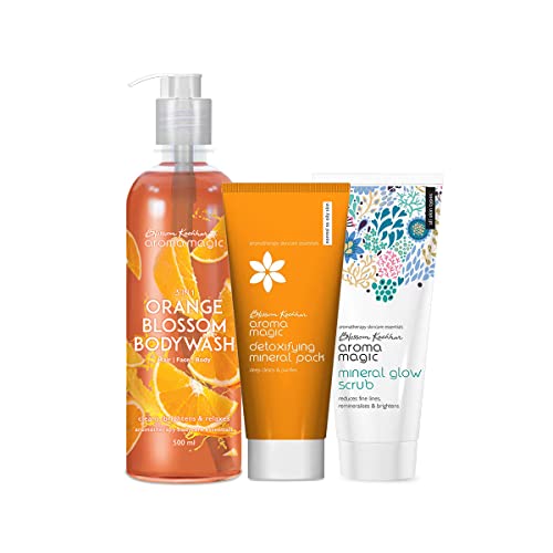 Aroma Magic Body Acne Combo (Unisex) | 3 in 1 Orange Blossom Body Wash (220ml) + Detoxifying Mineral Pack (100gm)| + Mineral Glow Scrub(100gm) | Pack Of 3