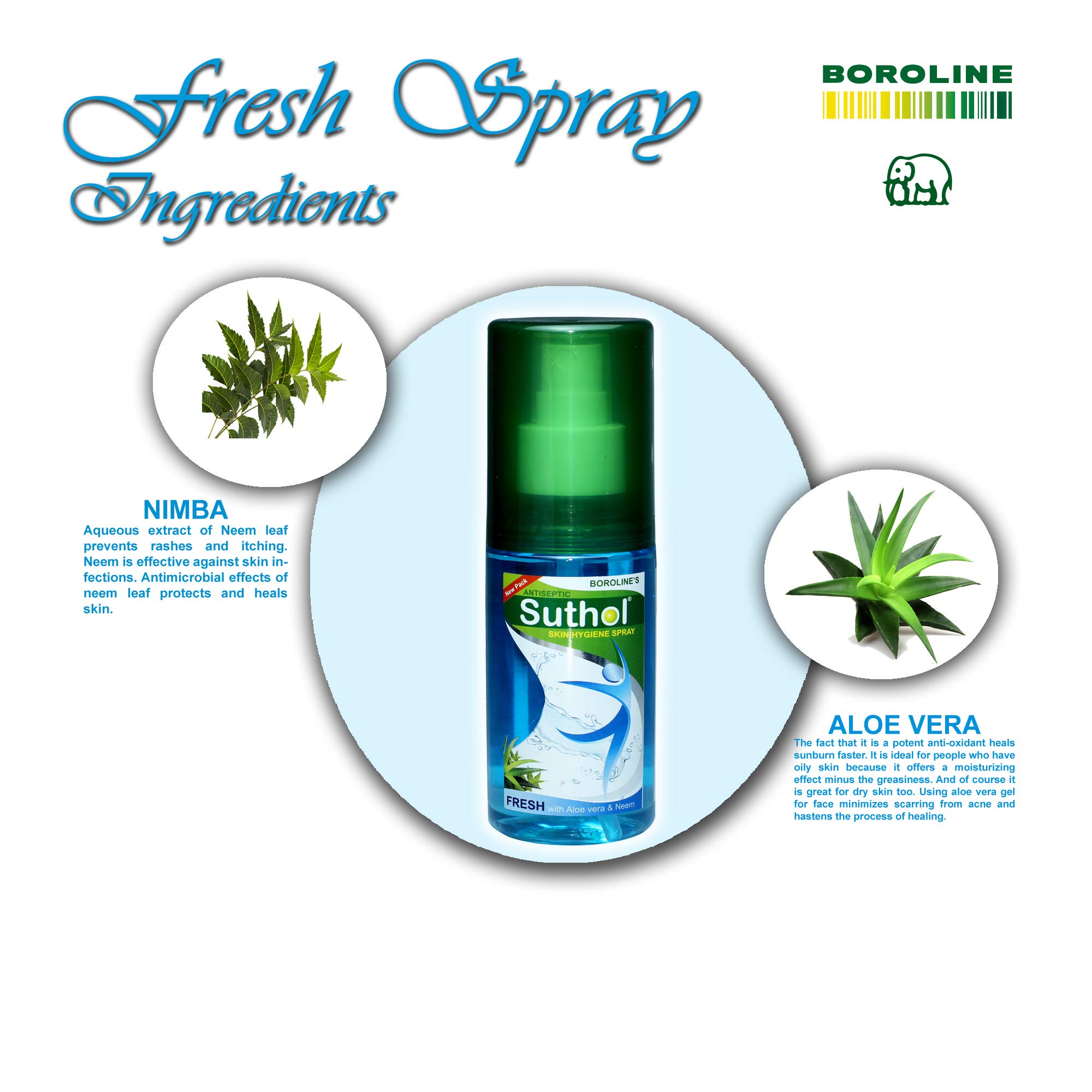 Suthol Boroline's Suthol Active Neem Spray 100 Ml + Aloe Vera Spray 100 Ml X 2 | S Relaxed Fit Tops Skin Irritations Prickly Heat Itching Rashes | With Neem Turmeric (Pack Of 3)