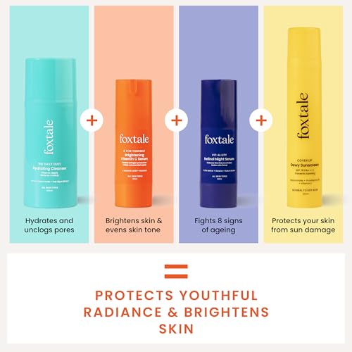 Foxtale Age Defender Routine (Dewy) Skin Care Kit | Retinol Night Serum 30ml + Vitamin C Face Serum 30ml + Cleanser Face Wash 100ml + Dewy Finish Sunscreen 50ml
