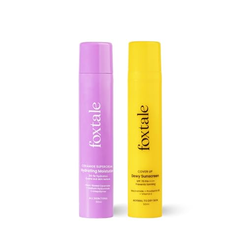 FoxTale Dewy Skin Duo | Ceramide Supercream Moisturizer - 50ml + Dewy Finish 70 SPF Sunscreen for All Skin Types 50ml