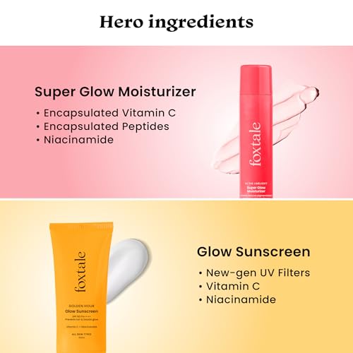 Foxtale Golden Glow Duo | SPF 50 Glow Sunscreen & Super Glow Moisturizer | Vitamin C, Niacinamide & Peptides | Brightens, Hydrates, Prevents Tan & Pigmentation | Lightweight, Non-Sticky, No White Cast | All Skin Types | Summer Essentials