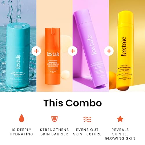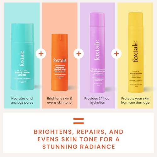 HomeBeautyFace CareSunscreenFoxtale Morning Skincare Kit for Women, Men | Cleanser Face Wash-100 ml, Vitamin C Face Serum- 30 ml, Ceramide Moisturizer-50 ml, Dewy Sunscreen SPF 70- 50 ml | Skincare Gift Set for Glowing Skin
