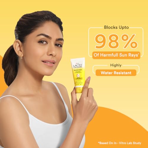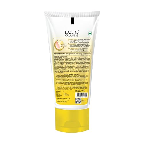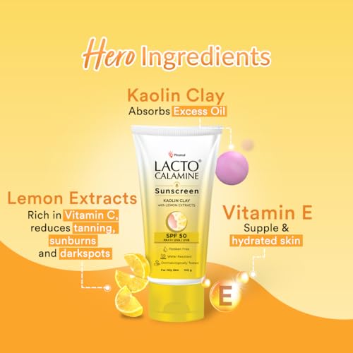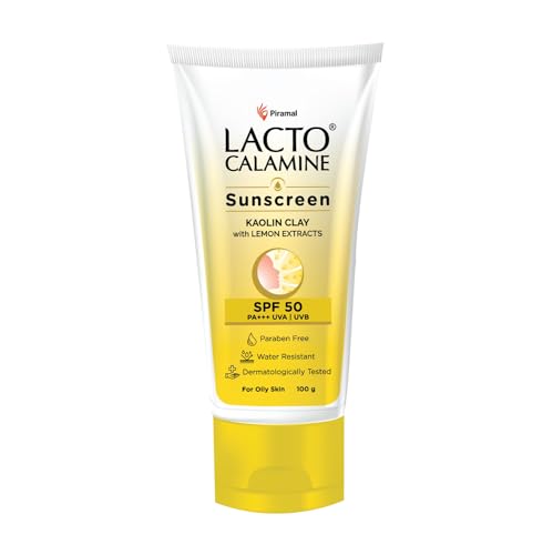 Lacto Calamine Sunscreen SPF 50 | 100g | PA +++ Sunscreen For Oily Skin | UVA â UVB Sunscreen | Water Resistant & No White Cast | With Kaolin Clay Vitamin E & Lemon Extracts | Paraben Free (100 g)