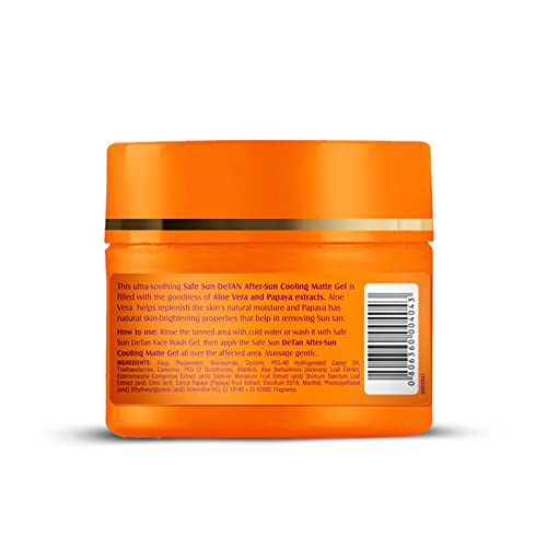 Lotus Herbals Safe Sun DeTan After-Sun Cooling Matte Gel is a Papaya and Aloe Vera enriched gel which helps cooldown skin and help soothe dry tanned and sunburnt skin. It is a non-sticky but hydrating formula that not only is paraben free but is suitable for all skin types.