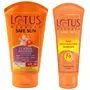 Lotus Herbals Safe Sun UV Screen Matte Gel SPF 50 100gAnti Tan specialist range from Lotus Herbals provides broad spectrum protection against all of Sun's harmful rays. It especially protects against the long wavelength UVA rays that are the primary cause of skin darkening and tanning and affect us throughout the year. Safe Sun Absolute Anti-tan Gel is a medium intensity cooling sunscreen gel especially formulated for oily & combination skin. It has the soothing goodness of Calendula and Vanilla extracts.Lotus Herbals Safe Sun Daily Multi Function Sunblock SPF-70 60gEnjoy Your Moment In The Sun Lotus Herbals Safe Sun Daily Multi Function Sunblock SPF-70 is loaded with natural goodness of carrots and avocado which not only protects your skin from harmful UVA and UVB radiations while lightening your skin tone and reducing appearance of brown spots freckles and blemishes. Now not only do you get to protect your skin from sun damages but you also get to look gorgeous while doing so! Carrot Extracts Carrots are loaded with vitamin A and antioxidants which help fight free radicals and protect your skin from damages from the sun external elements and other pollutants. Carrot extracts are also rich in vitamin C which boost skin health and give it a beautiful natural glow. Avocado Extracts Avocado is rich in antioxidant carotenoids which boost skin density and improve the overall texture of your skin. It is also high in oleic acid content which is a monosaturated fatty acid which maintains the moisture in the upper layer of your skin ensuring your skin stays hydrated and supple for long hours.