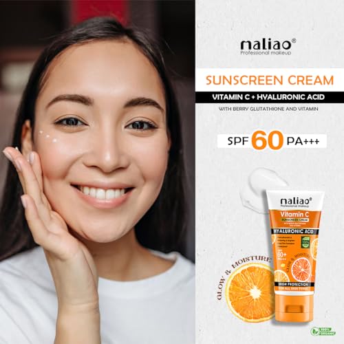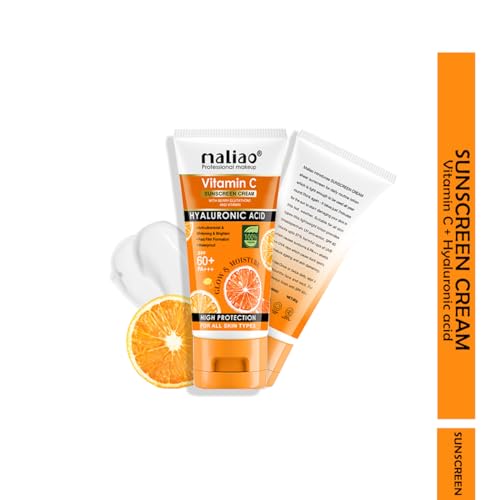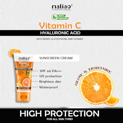Maliao Professional Makeup Vitamin C Sunscreen Cream is a multi-tasking broad-spectrum SPF 60+ sunscreen that protects your skin from harmful UVA and UVB rays while brightening and moisturizing it. This lightweight formula is packed with beneficial ingredients like Vitamin C Berry Glutathione and Hyaluronic Acid to help: Brighten and even skin tone ⨠Fight free radical damage Reduce the appearance of wrinkles and fine lines Provide deep hydration Leave a protective waterproof barrier ï¸ This sunscreen is suitable for all skin types including oily and sensitive skin.