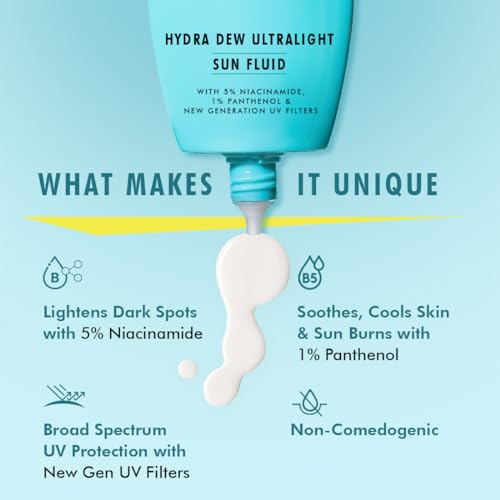 2 . ULTRA LIGHTWEIGHT WATER TEXTURE: Extremely Lightweight this sunscreen has a water-like texture that spreads easily and absorbs instantly without giving any white cast or sticky feel. Feels like a second skin.