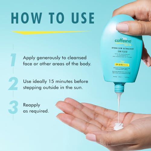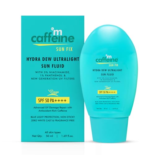 mCaffeine Hydra Dew Ultralight Sun Fluid SPF50 PA++++ UVA/UVB Blue Light Protection|Water Like Glow Texture|Lightweight, Non-Sticky, Quick Absorbing|No White Cast|All Skin Types|For Men/Women - 50ml